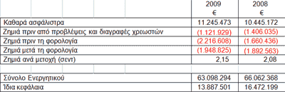 - Παρά στις δυσμενείς οικονομικές συνθήκες και τον έντονο ανταγωνισμό η Εταιρεία κατάφερε κατά το έτος 2009 να αυξήσει τα καθαρά της ασφάλιστρα κατά 7,6%.